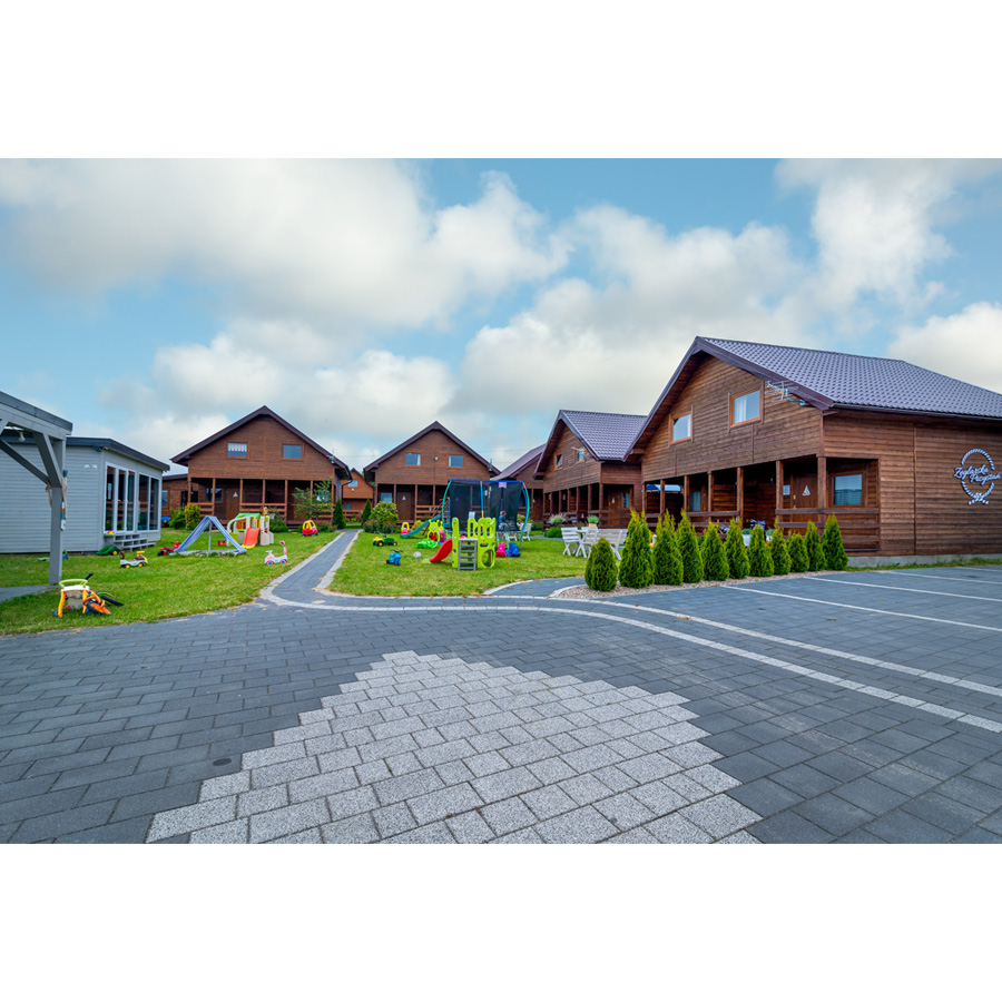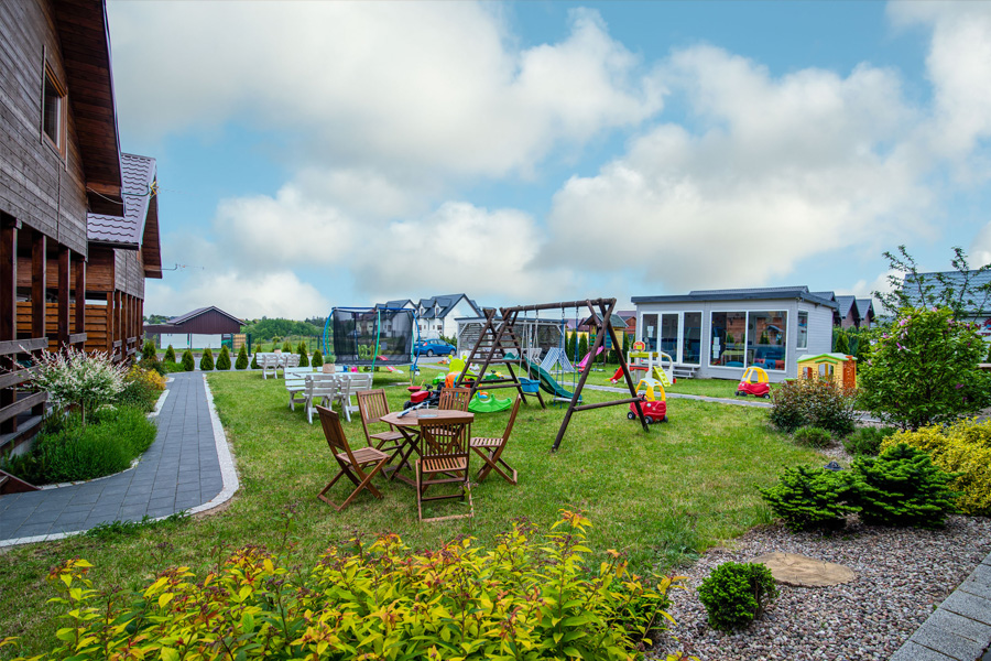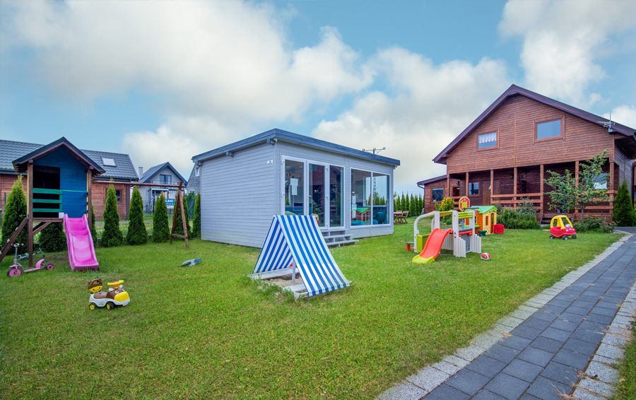 Nasze bliźniacze domki usytuowane są w głębi 2000m działki, która z przodu posiada wyłożony kostką brukową niestrzeżony parking oraz miejsce do grilowania i plac zabaw dla dzieci.