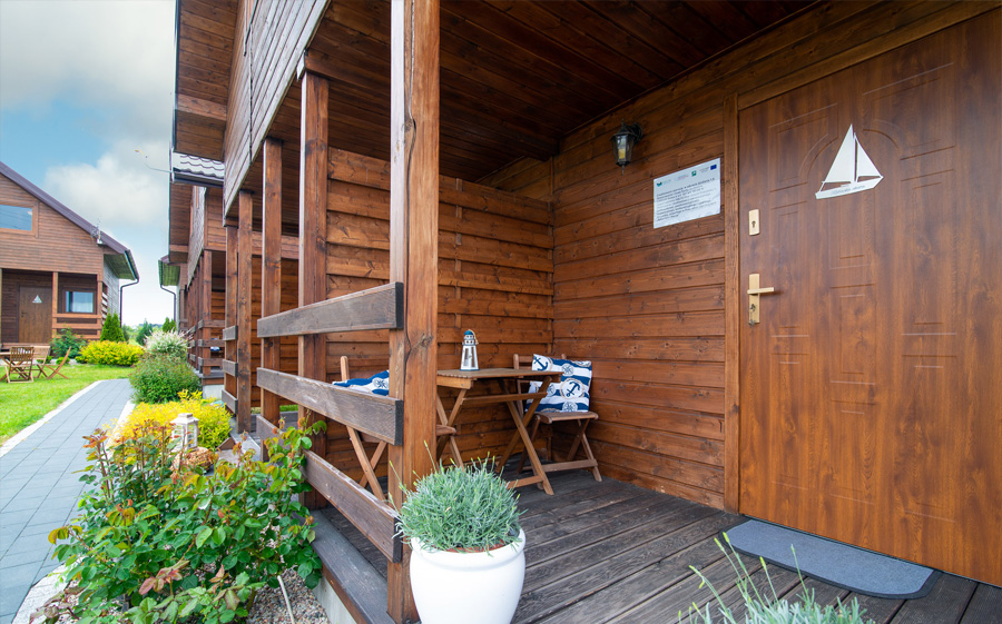 Żeglarska Przystań to domki składające się z dwóch poziomów - na parterze znajduje się salon (sofa z możliwością spania, stół z 6 krzesłami, komoda, TV) z aneksem kuchennym oraz łazienką z prysznicem. Natomiast na piętrze są dwie sypialnie, w których znajdują się 3 wygodne, pojedyńcze łóżka, szafki nocne oraz szafa, a także łoże małżeńskie i komoda. Domki są obiektem sezonowym, od maja do września. Zostały oddane do użytku w 2014r.